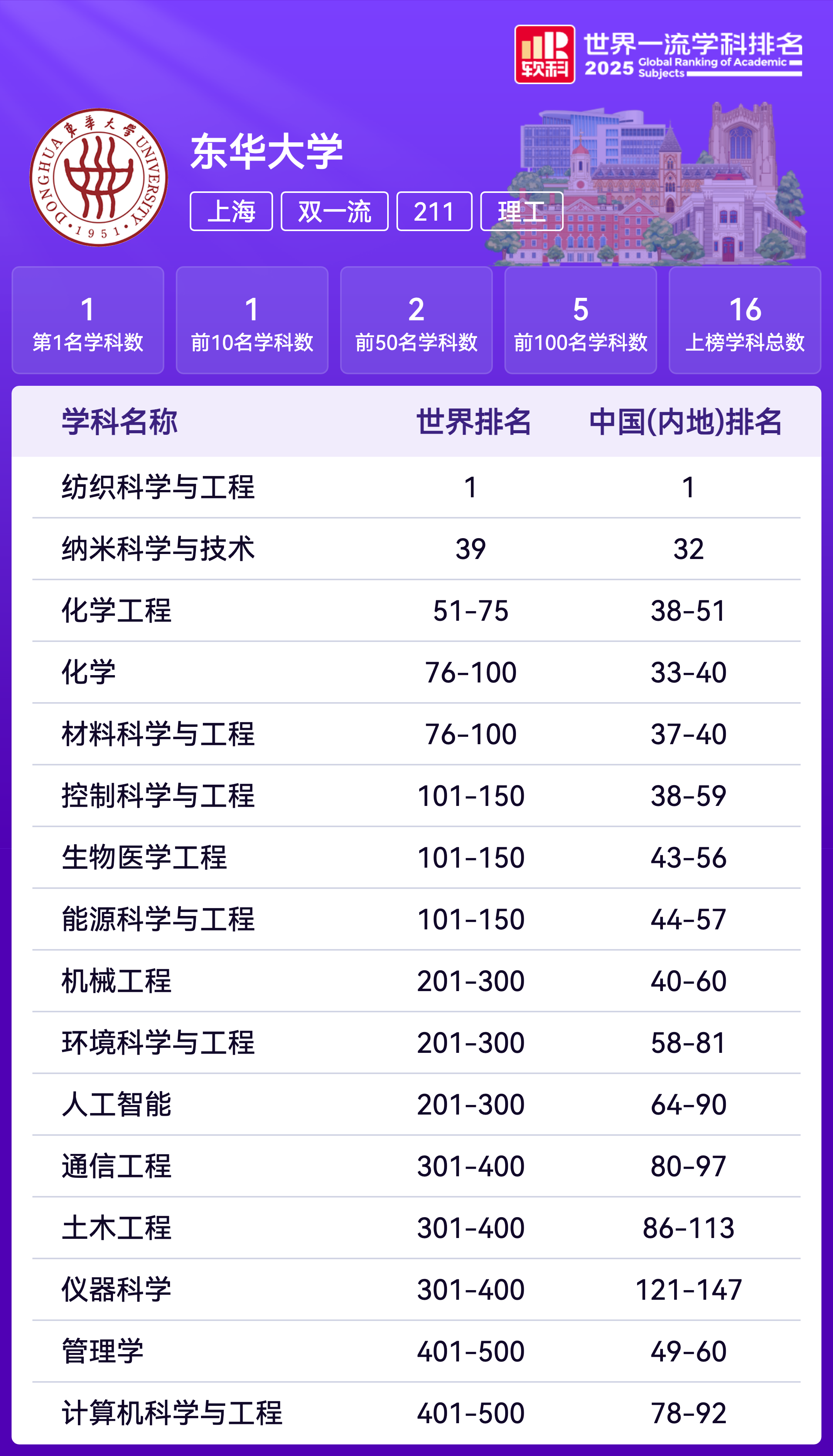 软科中国大学排名(主榜)