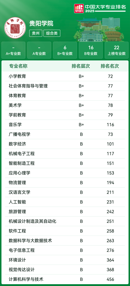 | 专业代码 | 专业名称 | 评级 | 专业排名 |