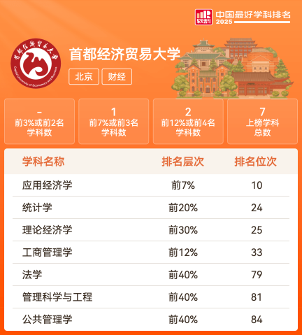 | 学科代码 | 学科名称 | 排名层次 | 学科排名 |