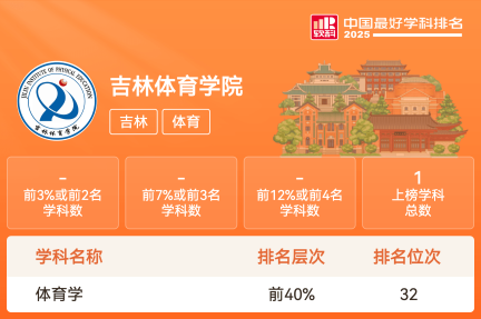 吉林体育学院的前身是1958年成立的长春体育学院,1961年更为现名,是一所高等体育专业院校。2004年,经吉林省人民政府批准,原吉林省体育运动学校并入。学校现有南岭和临河两个校区,占地面积62.7万平方米。入选2019—2020年节约型公共机构示范单位,2015年被评为“全国文明单位”,2016年学校党委被评为吉林省先进基层党组织。近年来学校的国际交流日益活跃,连续多次举办国际学术会议,先后与美国、韩国、日本、法国等一些国家和地区的高等院校和科研机构建立校际友好关系,每年互派教师、学生开展访学和交流活动。