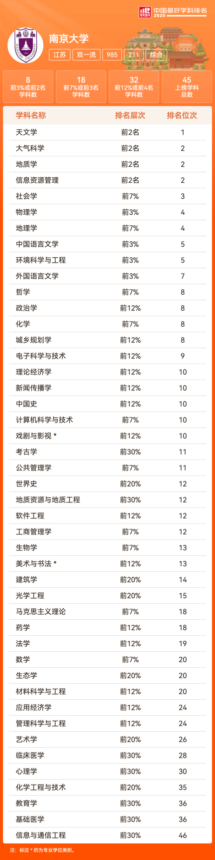 软科中国大学排名(主榜)