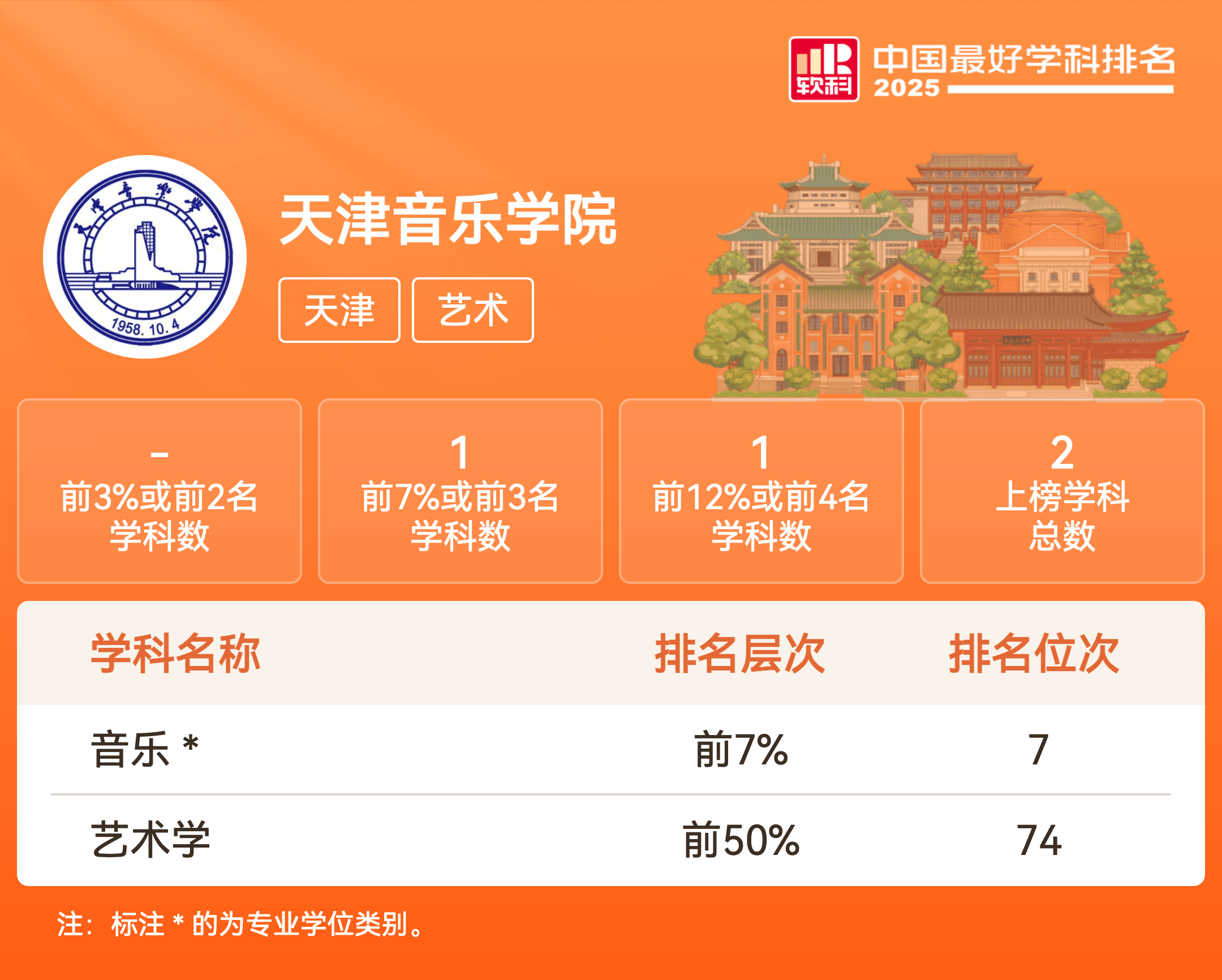 | 音乐 | 前7% | 7 |