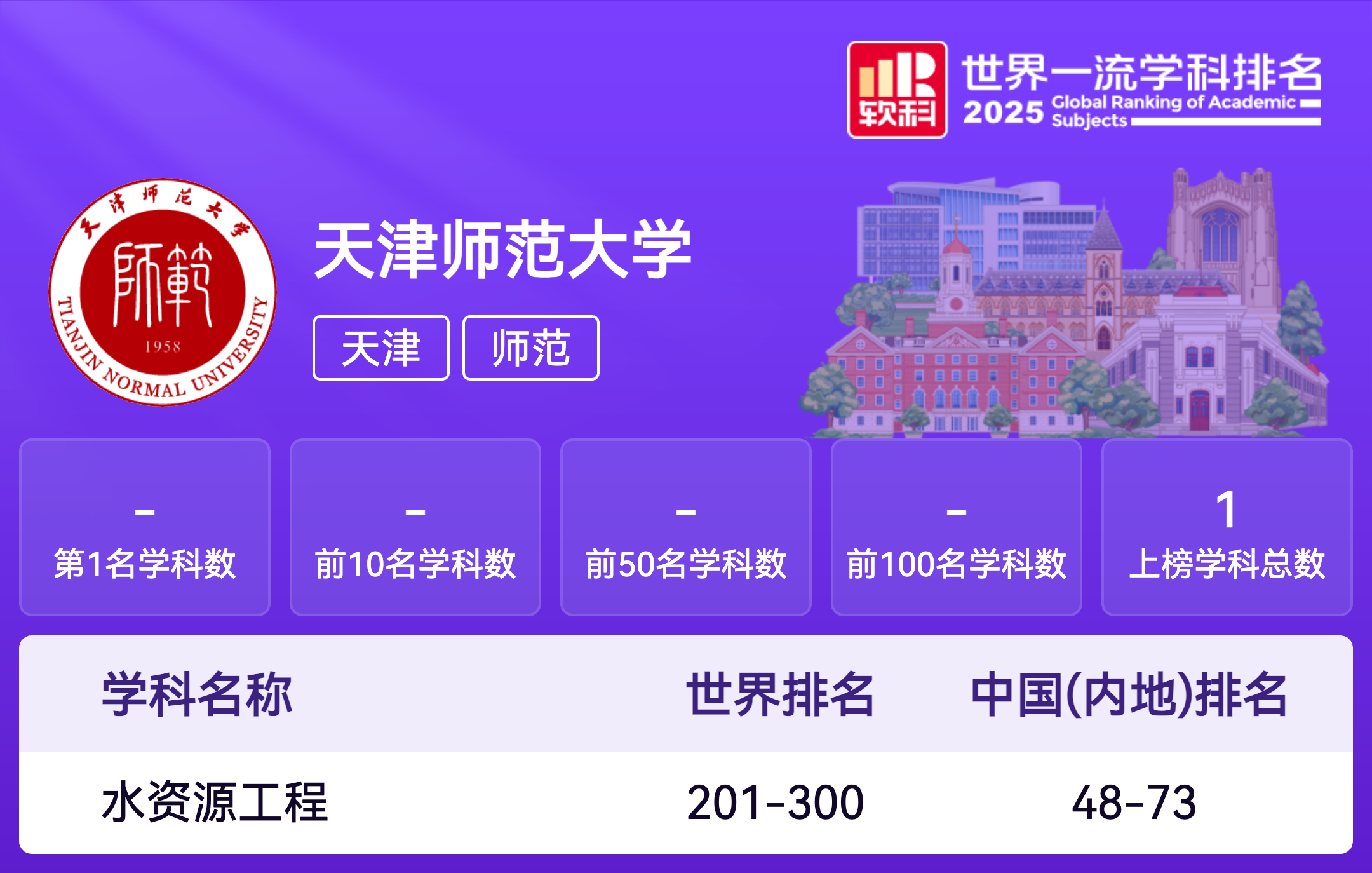 | 学科代码 | 学科名称 | 排名层次 | 学科排名 |