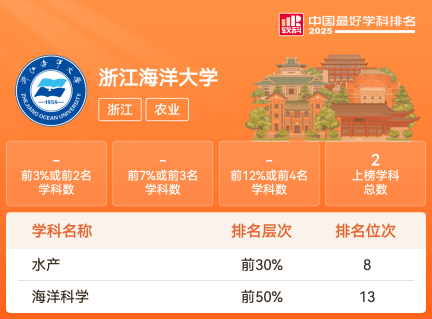 浙江海洋大学是自然资源部与浙江省人民政府共建高校,是浙江省重点建设高校之一。学校创建于1958年,始名舟山水产学院;1975年更名为浙江水产学院,1998年与舟山师范专科学校合并组建为浙江海洋学院;2000年之后舟山卫生学校、浙江水产学校、浙江省海洋水产研究所、舟山石油化工学校和舟山商业学校等学校(单位)相继并(进)入;2016年更名为浙江海洋大学。浙江海洋大学为首批“卓越农林人才教育培养计划”实施单位,CDIO工程教育联盟成员单位,“一带一路”南南合作农业教育科技创新联盟单位,中国-中东欧“16+1”国家高校联合会成员。浙江海洋大学现有新城和定海两个校区,总占地面积2608亩(其中海域使用面积720亩),校舍建筑面积53.4万平方米。