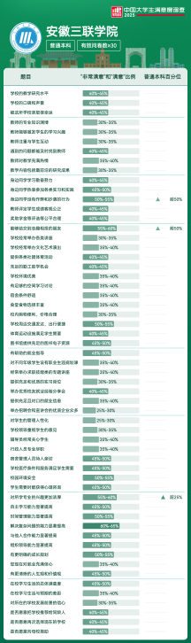 | 满意度前5项 | 满意及以上比例 | 全国高校排名区间 |