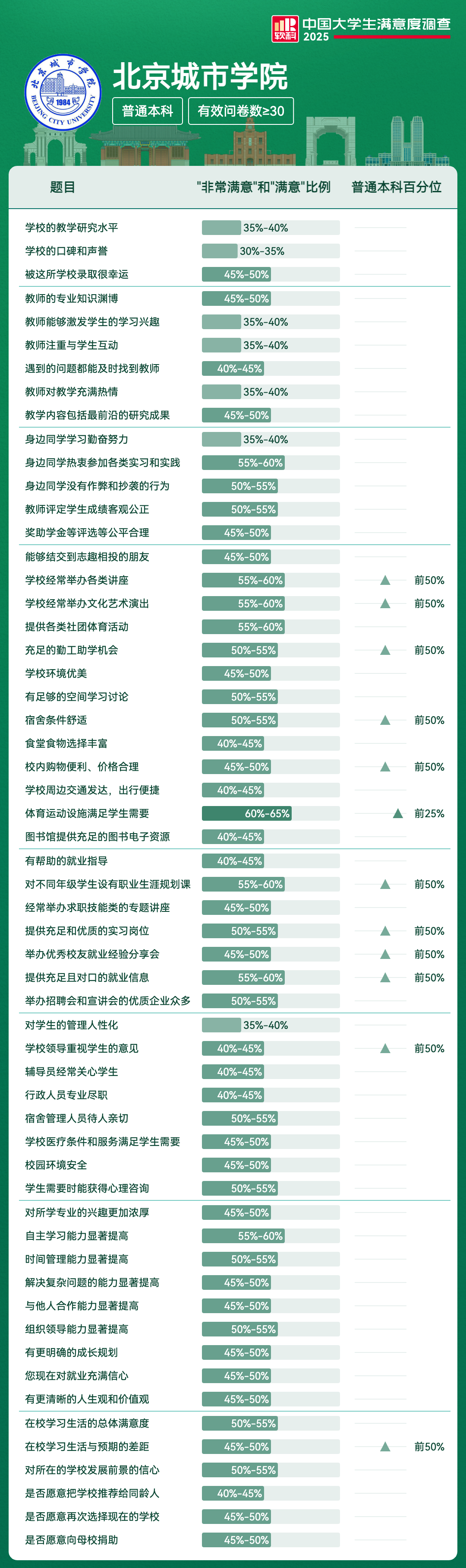 | 宿舍条件舒适 | 50%-55% | 前50% |