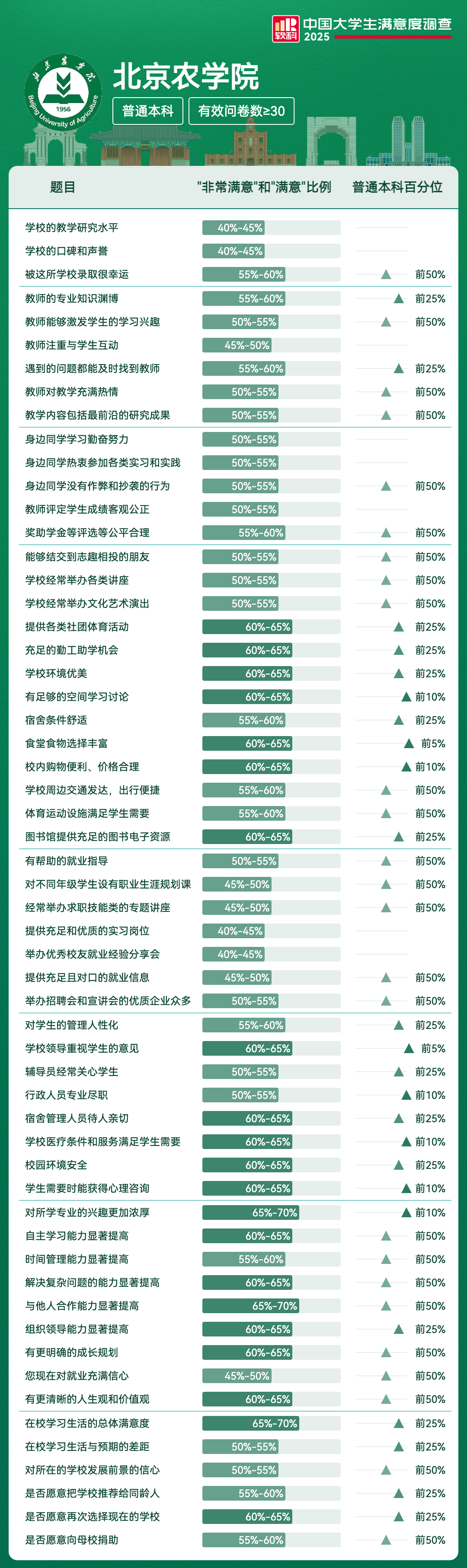 学校领导重视学生的意见 | 60%-65% | 前5% |
