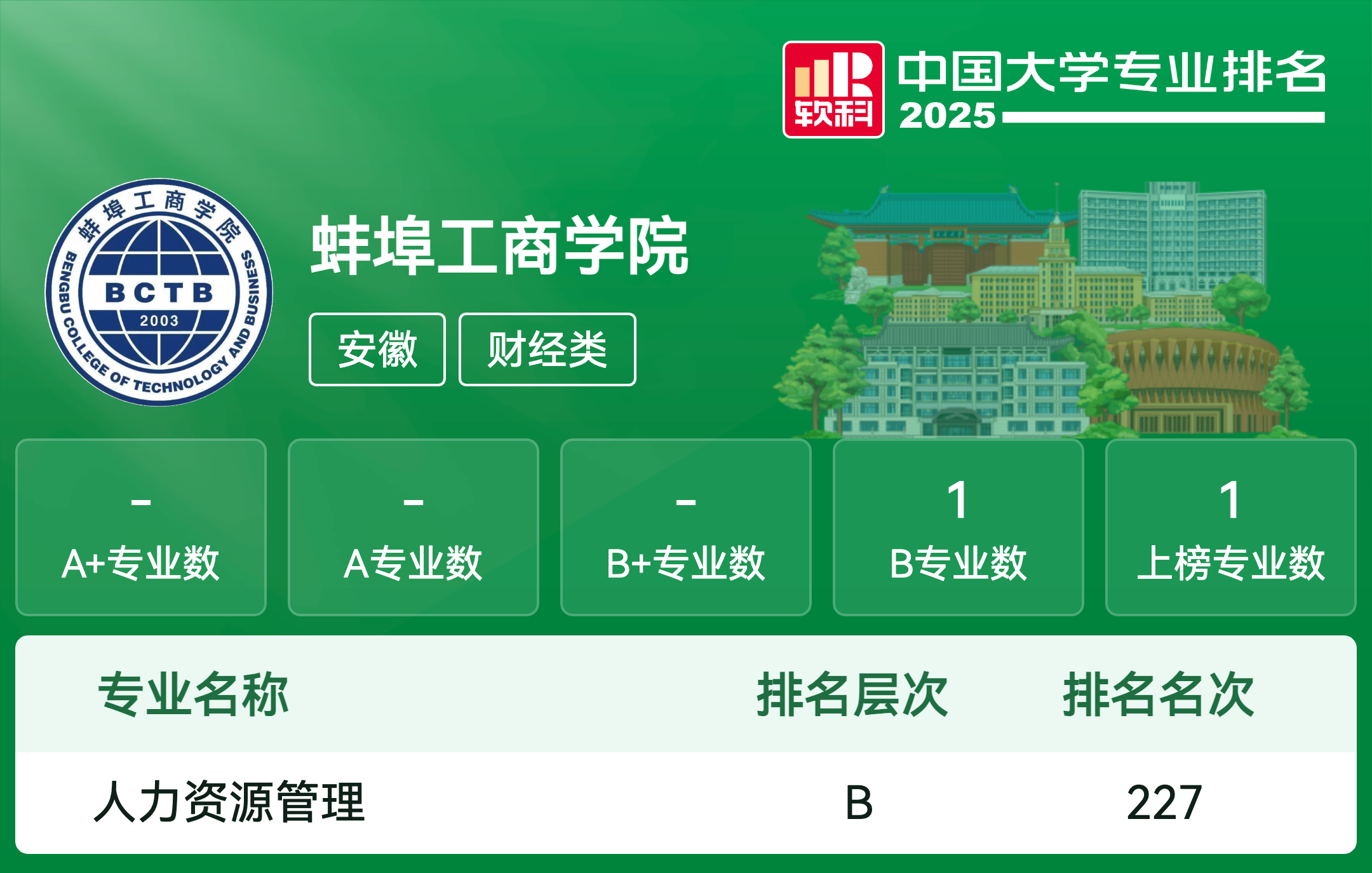 | 专业代码 | 专业名称 | 评级 | 专业排名 |