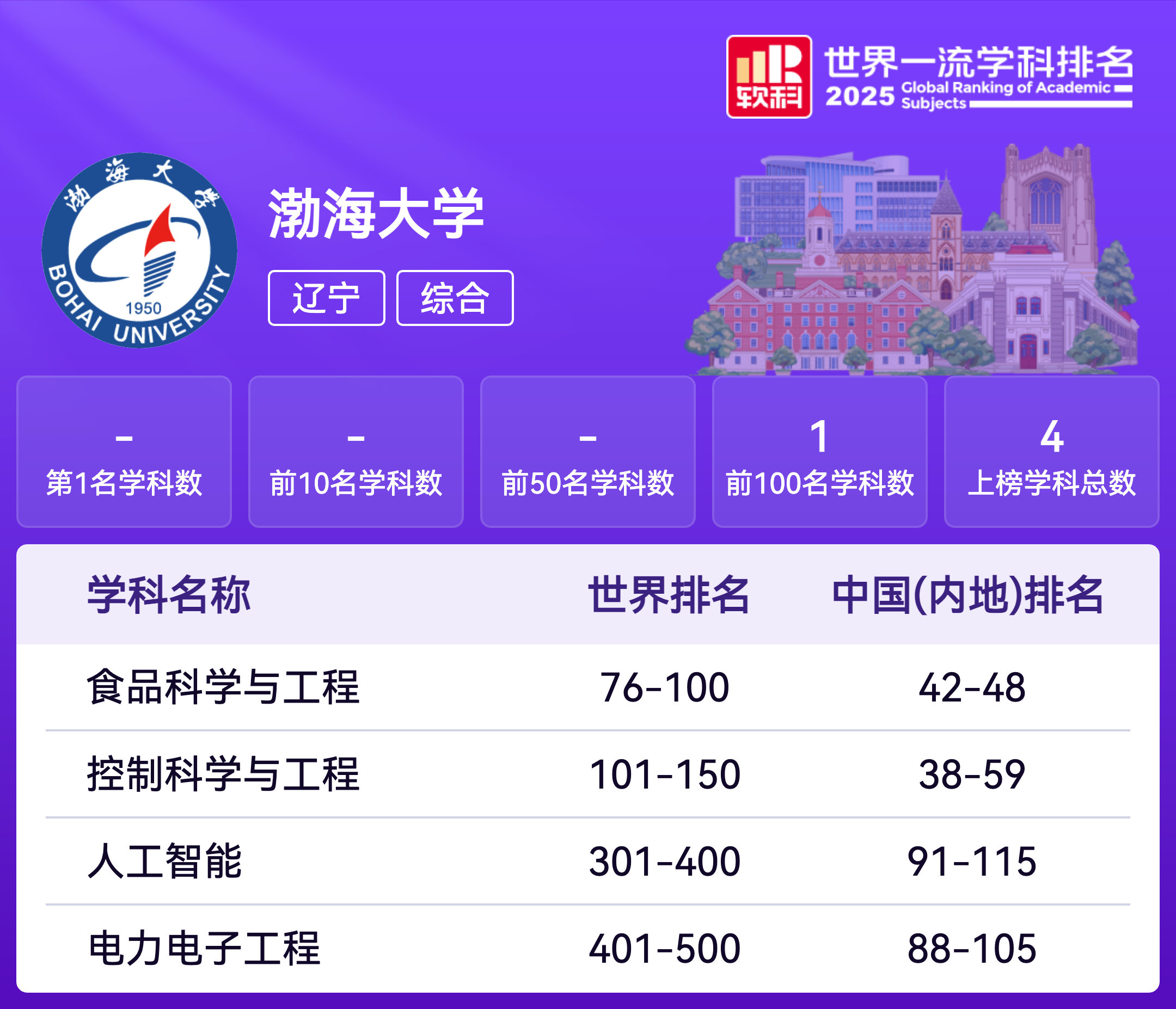 | 学科代码 | 学科名称 | 排名层次 | 学科排名 |