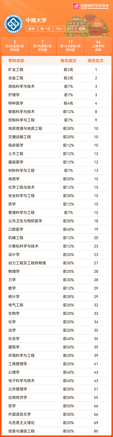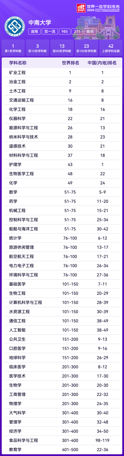 软科中国大学排名(主榜)