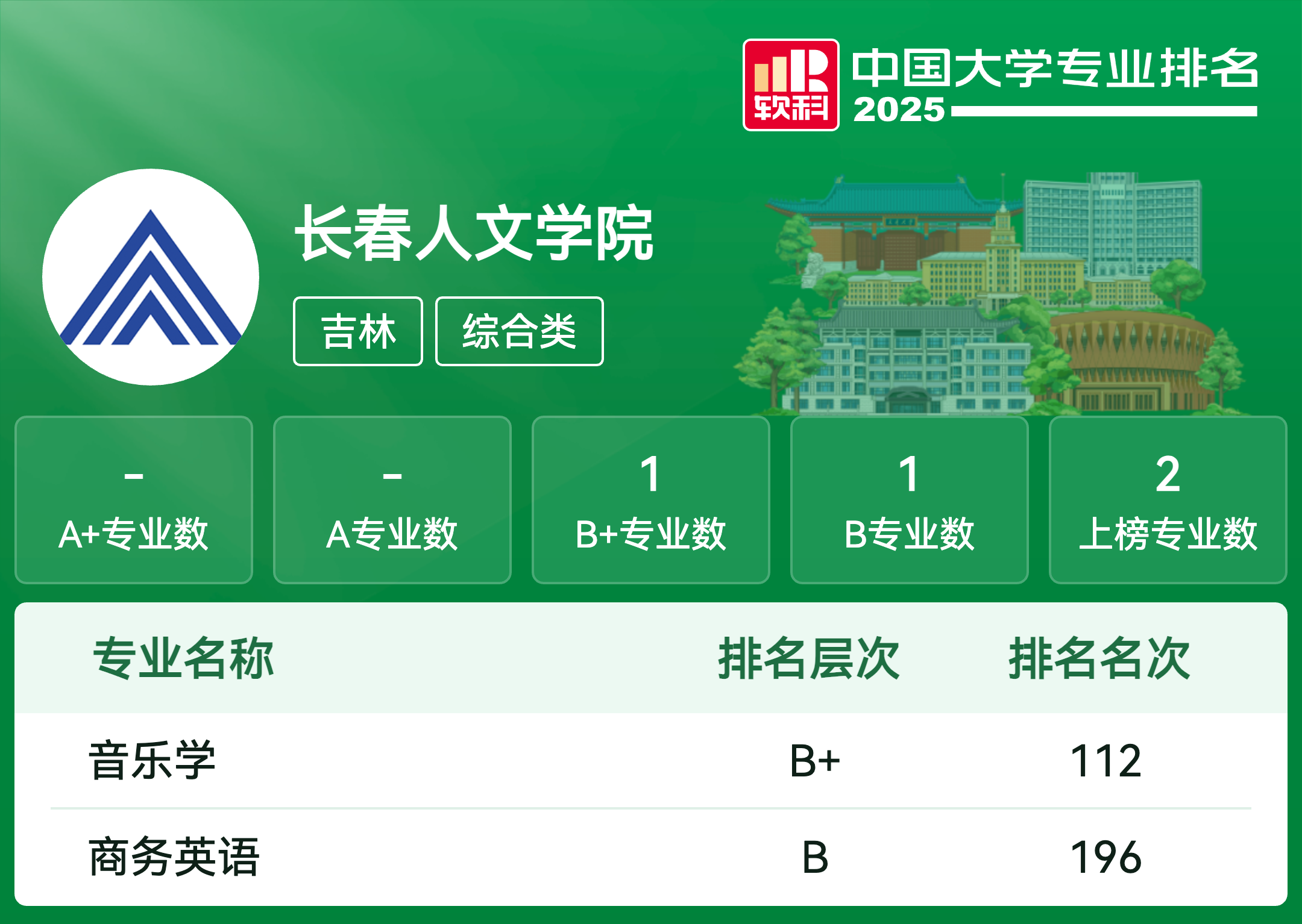 | 专业代码 | 专业名称 | 评级 | 专业排名 |