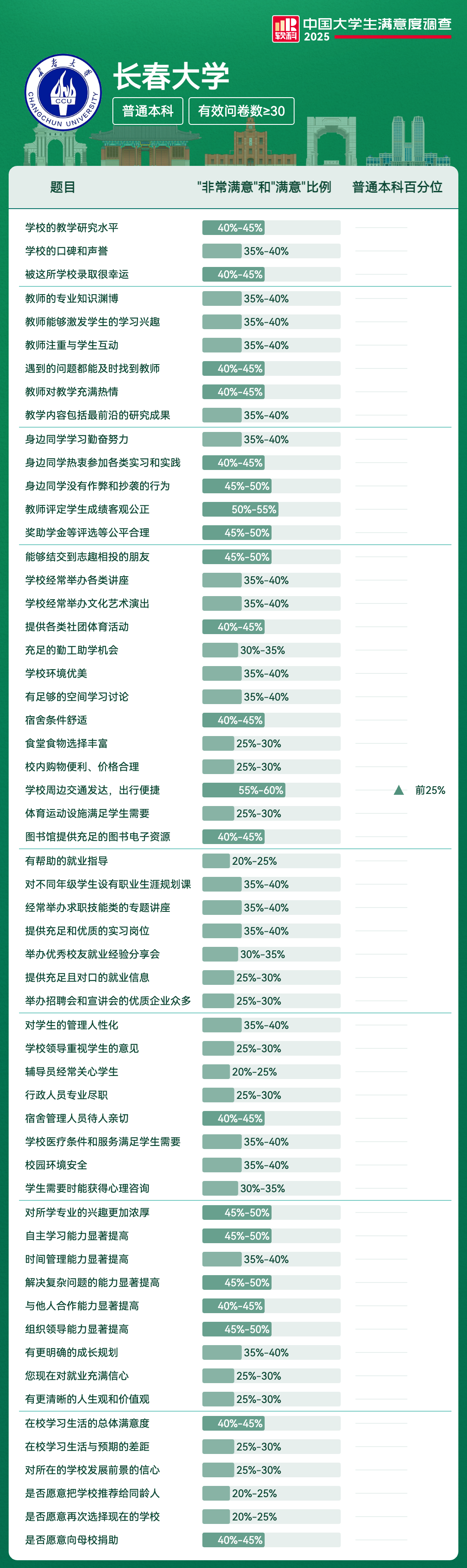满意度前5项 | 满意及以上比例 | 全国高校排名区间 |