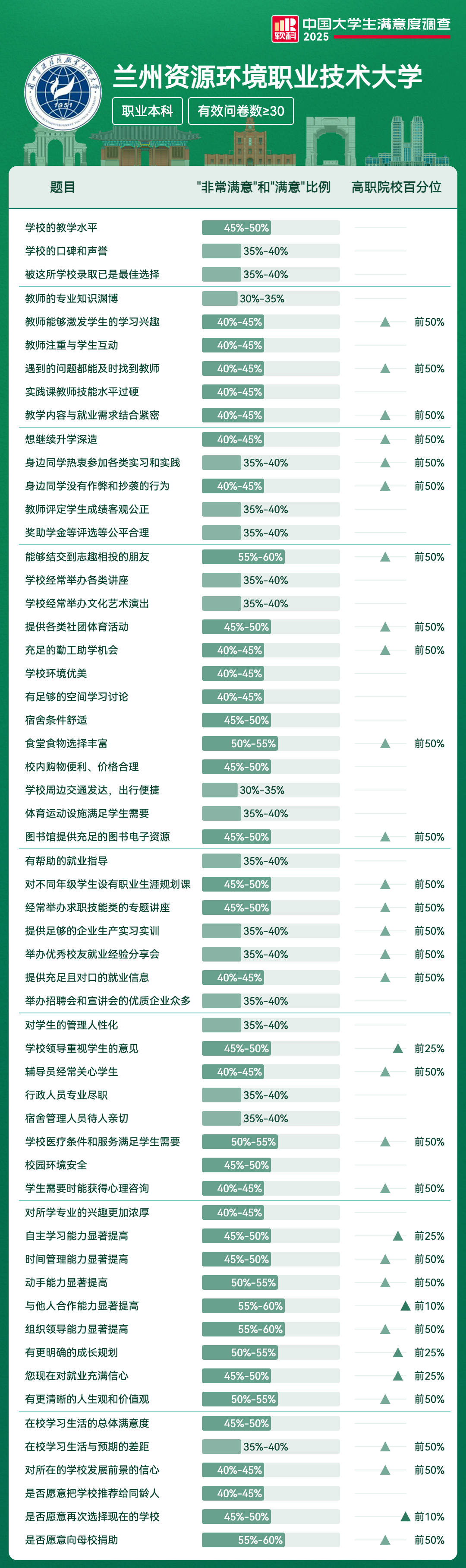 | 是否愿意再次选择现在的学校 | 45%-50% | 前10% |
