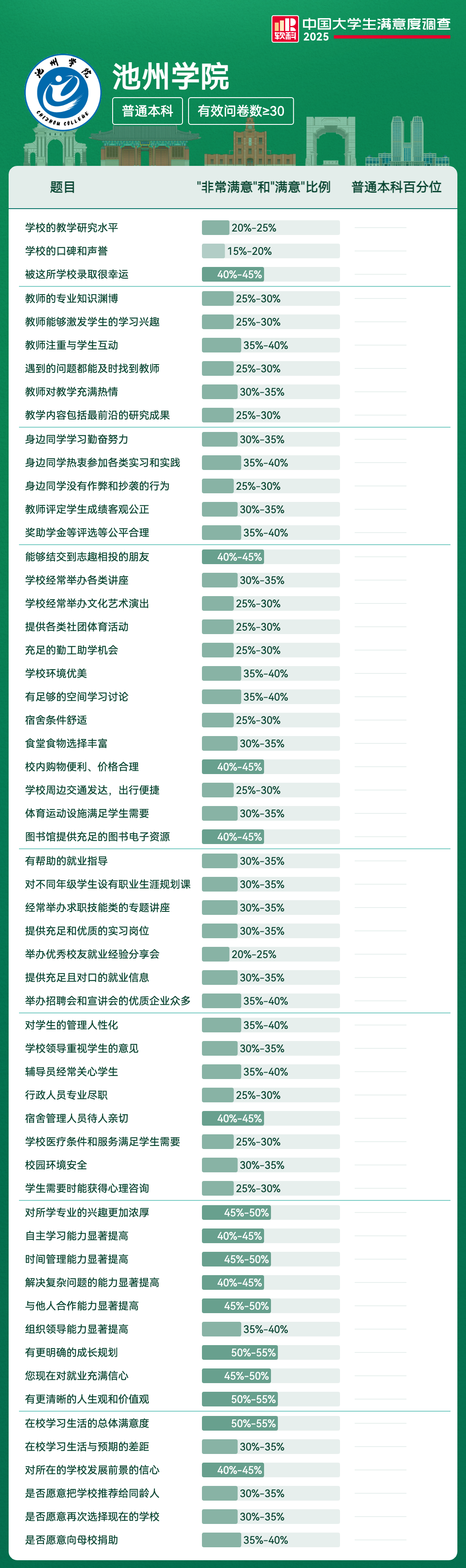 | 满意度前5项 | 满意及以上比例 | 全国高校排名区间 |