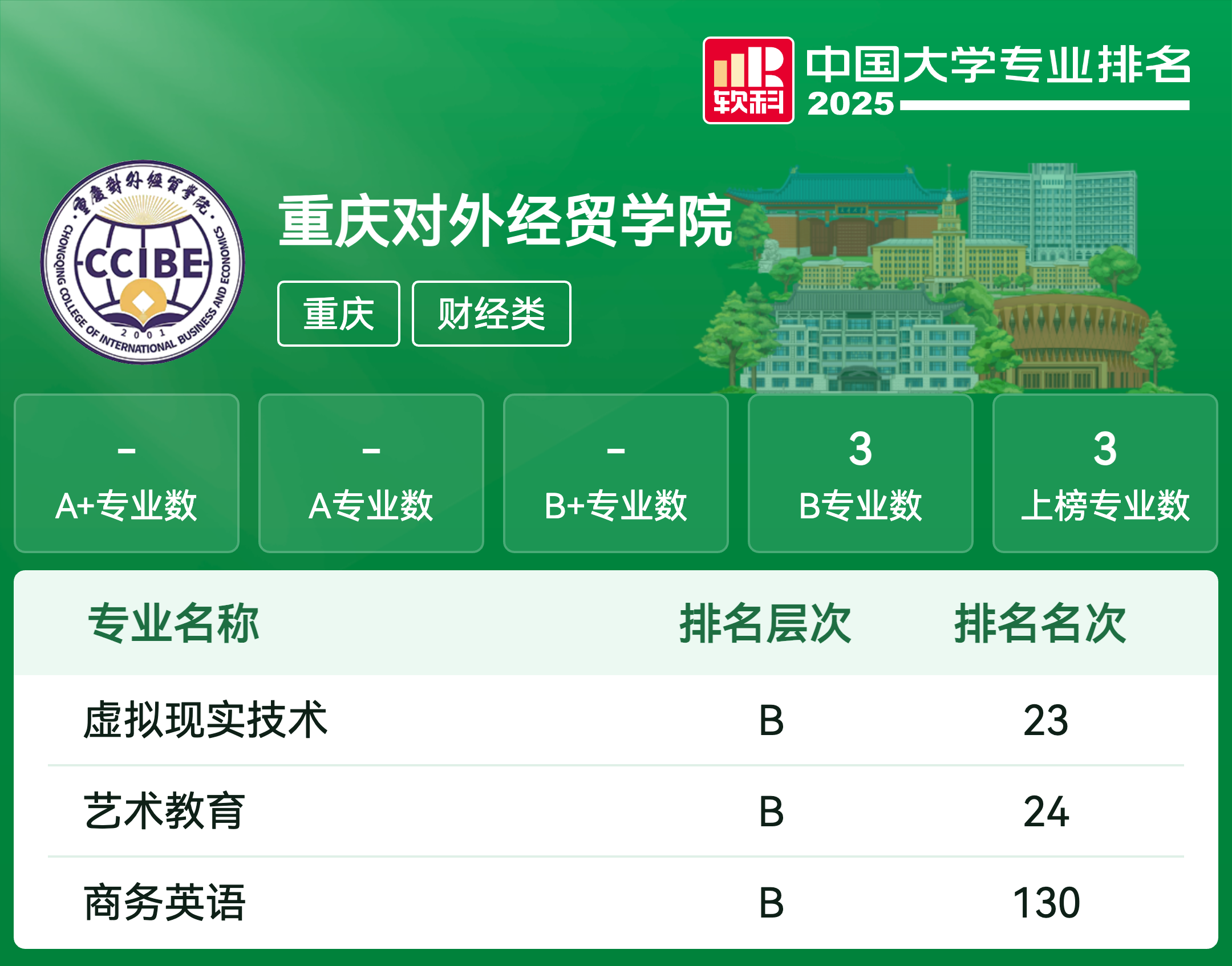 | 专业名称 | 评级 | 专业排名 |