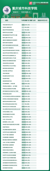 | 满意度前5项 | 满意及以上比例 | 全国高校排名区间 |