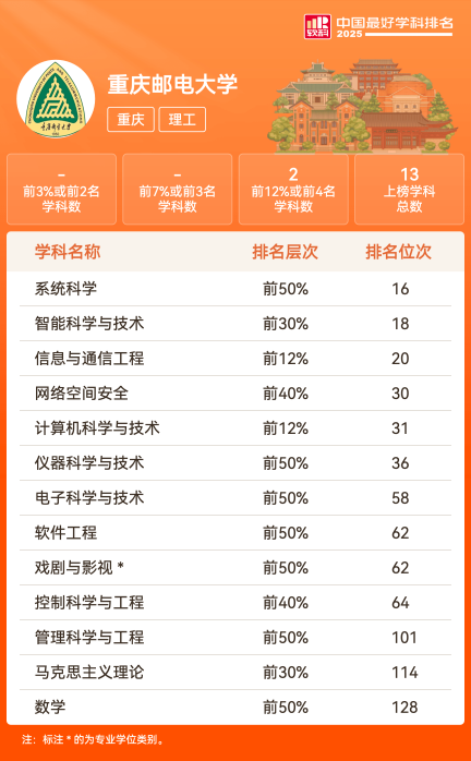 优势突出的学科专业:在第四轮学科评估中信息与通信工程、计算机科学与技术学科获评B+,控制科学与工程、软件工程学科获评B-。工程学科和计算机科学学科进入ESI全球排名前1%。国家级一流专业14个、国家级特色专业5个、国家级卓越工程师实施专业5个。