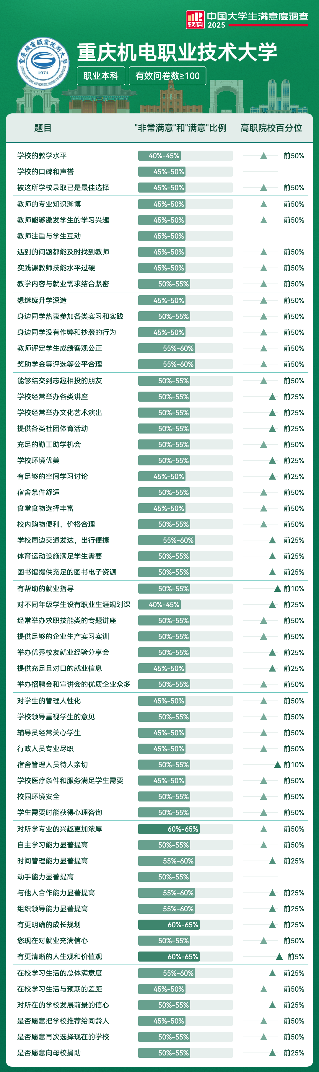 | 学校经常举办各类讲座 | 50%-55% | 前25% |