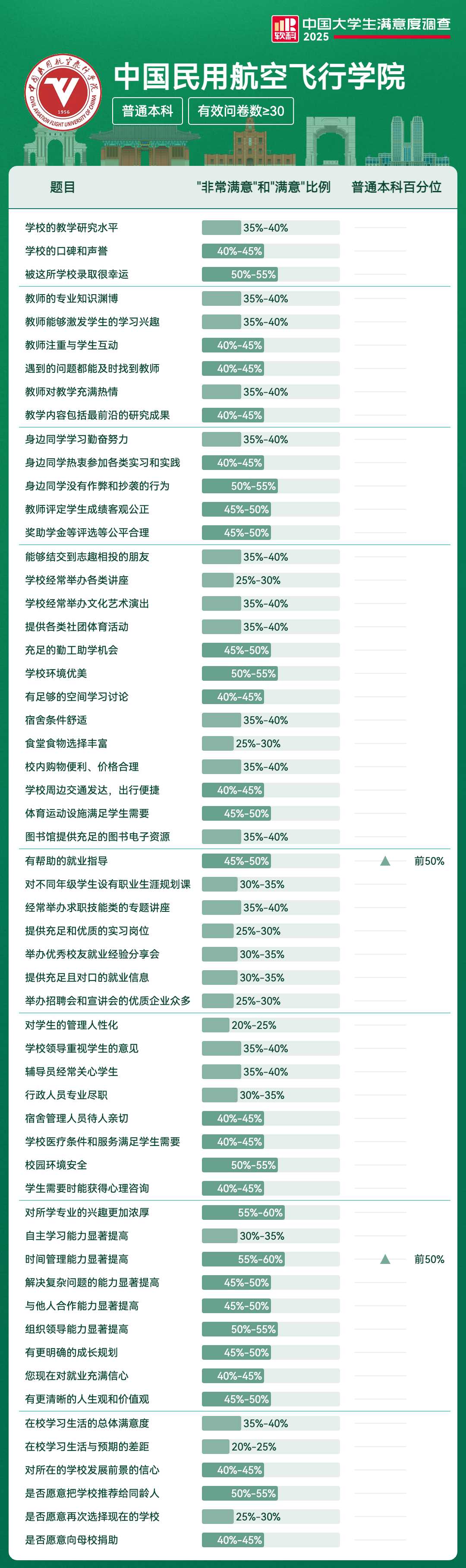 | 有帮助的就业指导 | 45%-50% | 前50% |