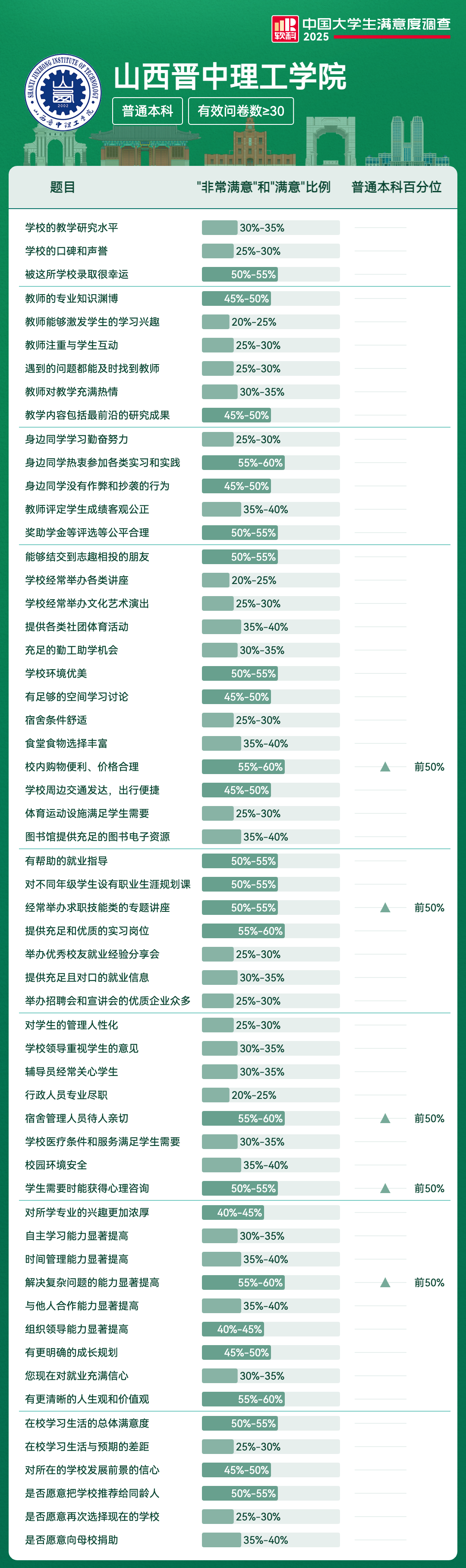 | 宿舍管理人员待人亲切 | 55%-60% | 前50% |