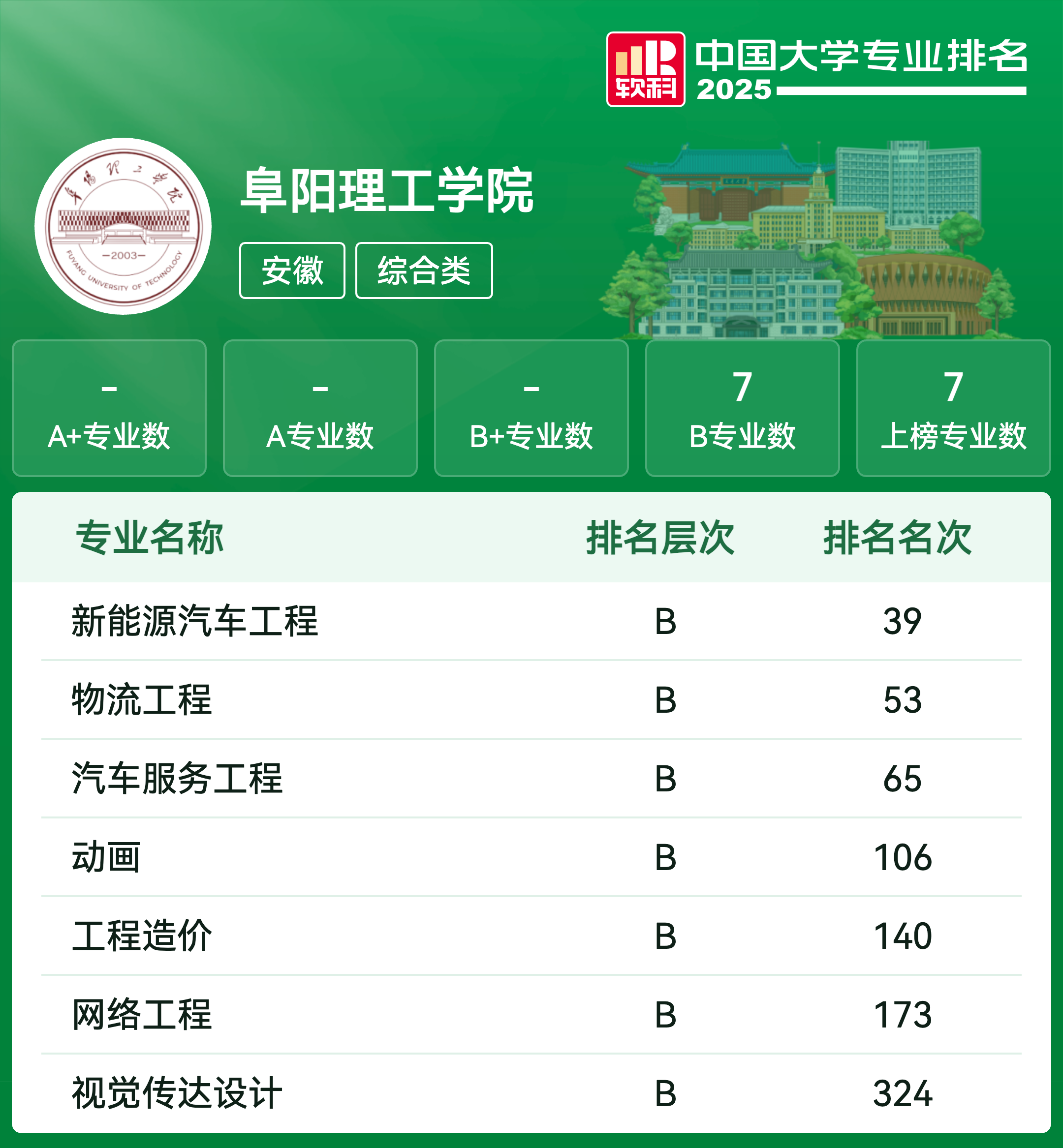 | 专业代码 | 专业名称 | 评级 | 专业排名 |
