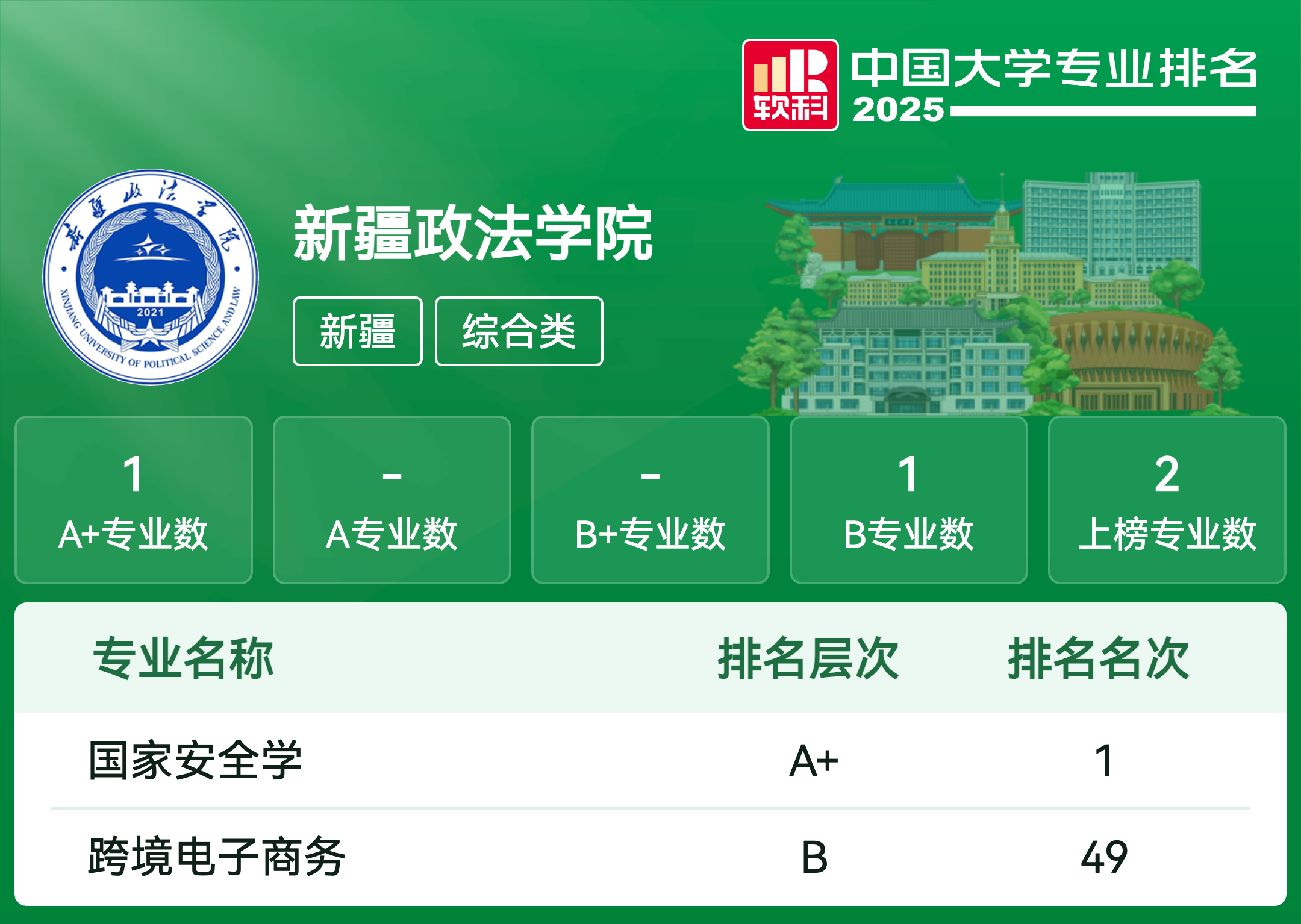 | 专业名称 | 评级 | 专业排名 |