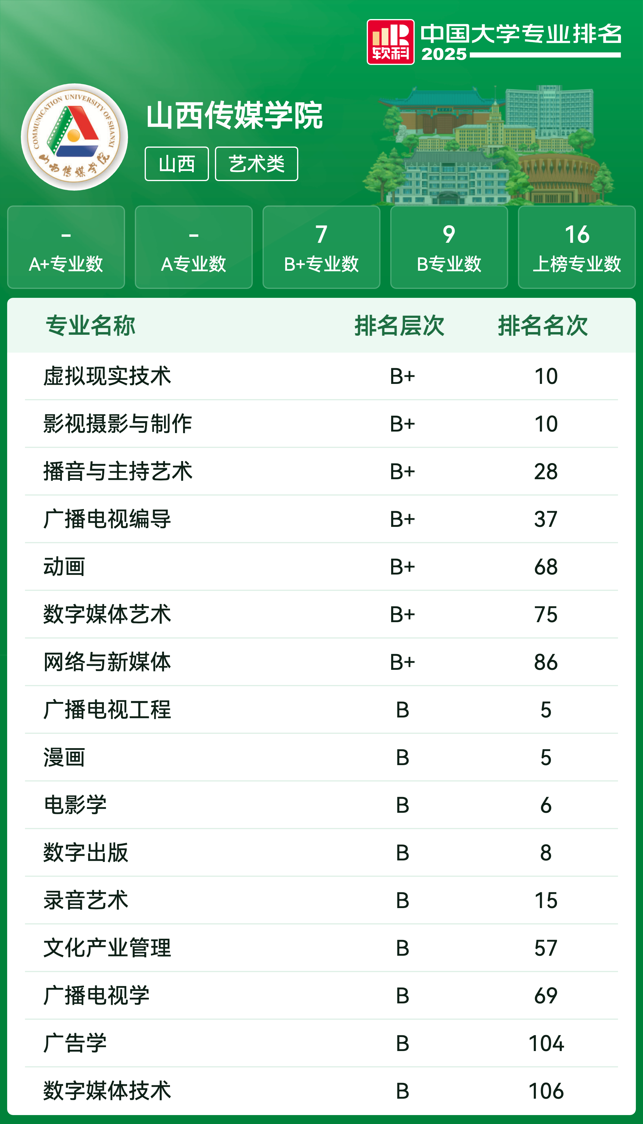 | 广播电视编导 | B+ | 37 |