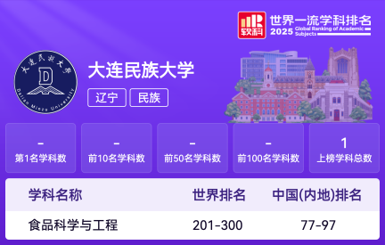 | 学科代码 | 学科名称 | 排名层次 | 学科排名 |