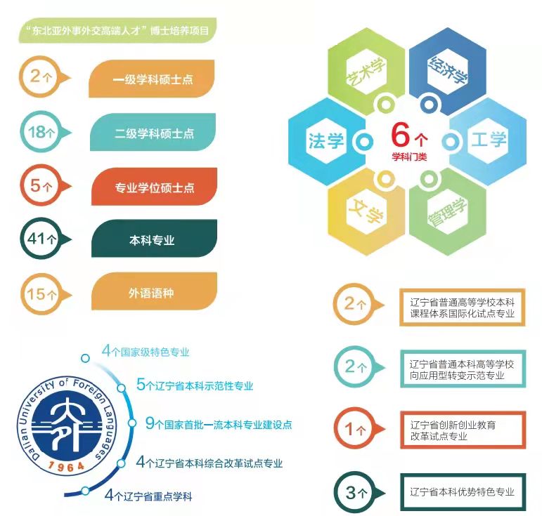 大连外国语大学是辽宁省省属高校,是东北地区唯一一所公立外国语大学。学校于1964年在周恩来总理的亲切关怀下成立,目前已发展成为以外语为主,以国际化办学为特色,拥有文学、经济学、管理学、工学、法学、艺术学等学科的多科性外国语大学。2016年入选“辽宁省一流大学重点建设高校”,外国语言文学学科入选辽宁省重点建设的“一流学科”,并在“2020软科中国最好学科排名”中位列第10名,百分位段全国前5%。