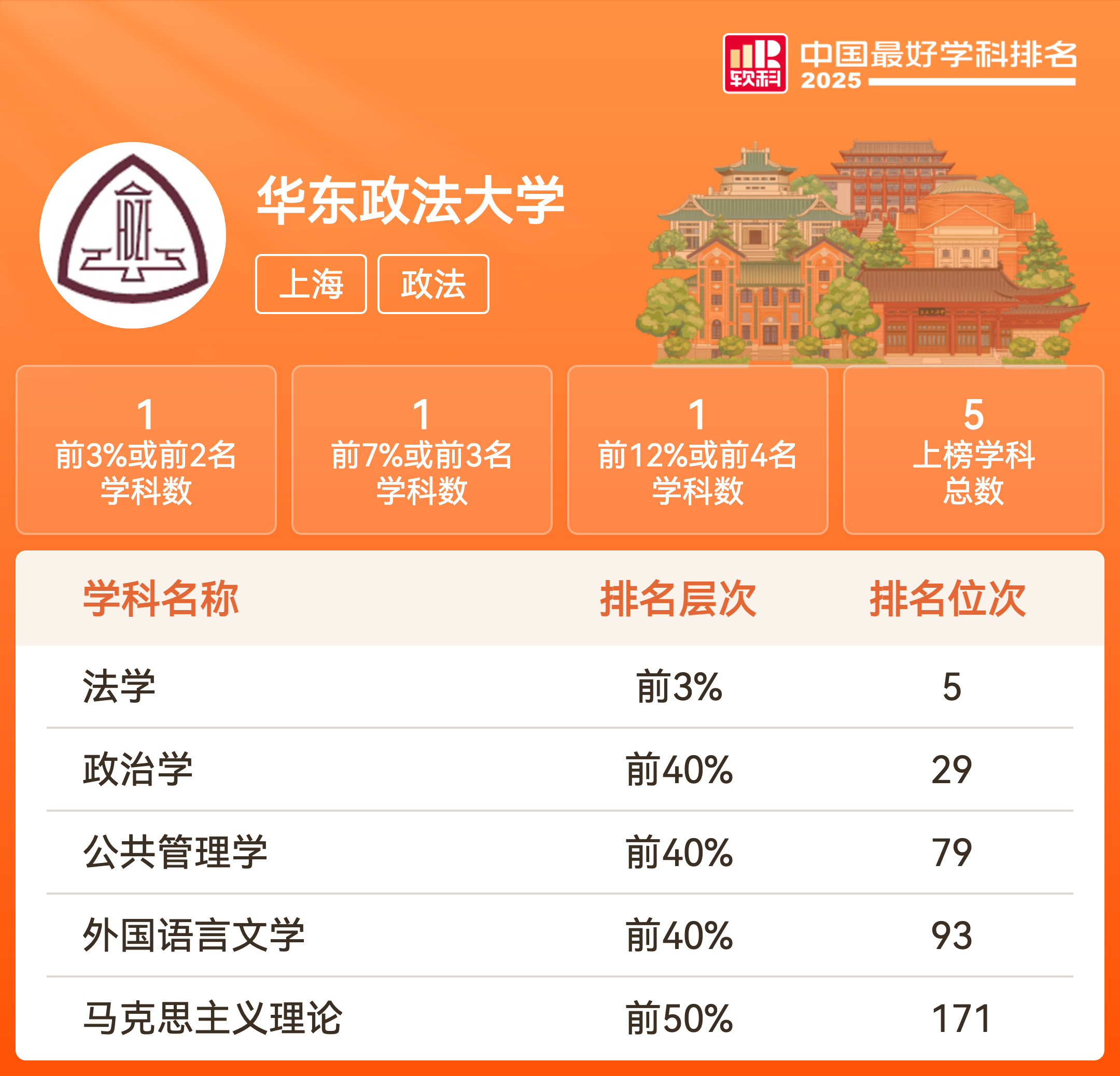 华东政法大学原名为华东政法学院,1952年6月由圣约翰大学、复旦大学、南京大学、东吴大学、厦门大学、沪江大学、安徽大学、上海学院、震旦大学9所院校的法律系、政治系和社会系在圣约翰大学旧址合并成立;1958年并入上海社会科学院;1963年再次筹建;1966年停止招生,1972年被撤销;1979年3月第二次复校;2007年3月更名为华东政法大学。华东政法大学是中华人民共和国创办的第一批高等政法院校之一,为教育部与上海市共建的上海市高水平地方高校。