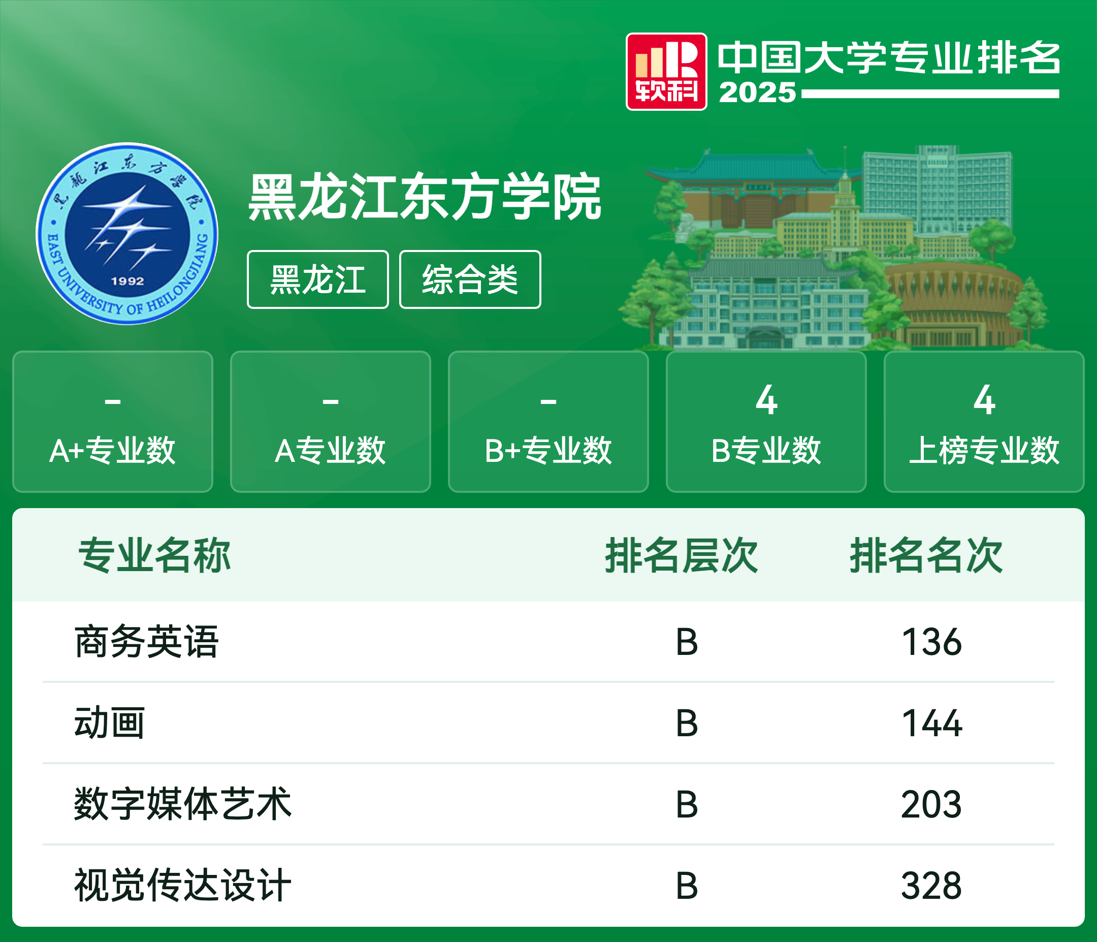 | 专业代码 | 专业名称 | 评级 | 专业排名 |