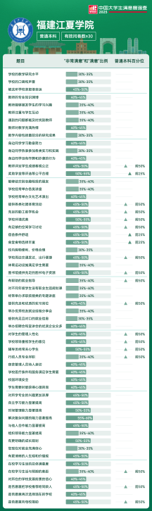 | 宿舍条件舒适 | 45%-50% | 前25% |