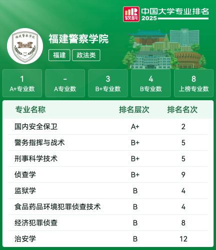 | 专业代码 | 专业名称 | 评级 | 专业排名 |