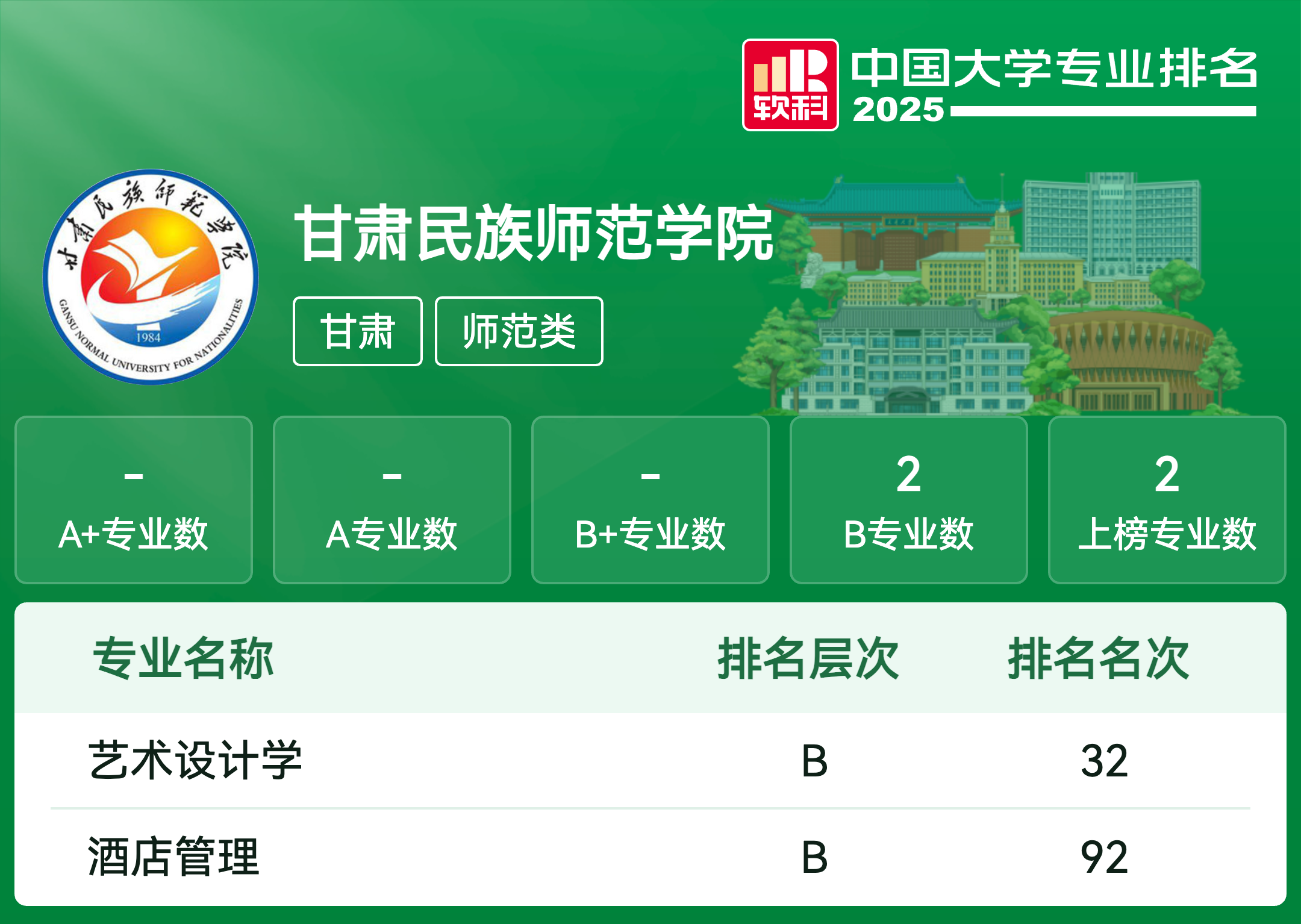 | 专业代码 | 专业名称 | 评级 | 专业排名 |