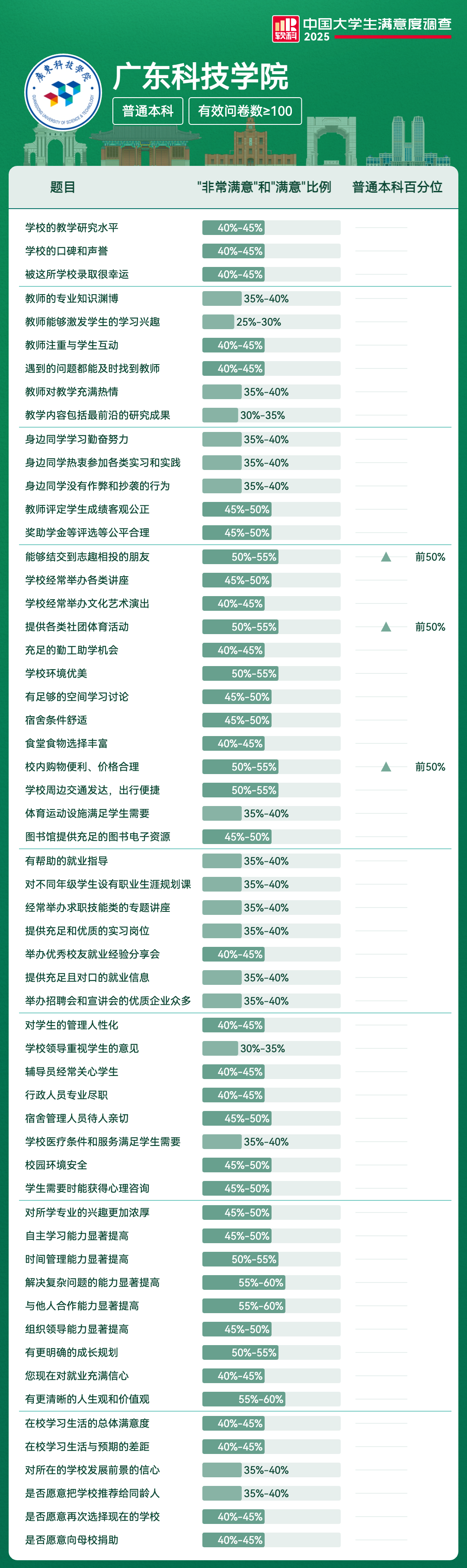 | 满意度前5项 | 满意及以上比例 | 全国高校排名区间 |