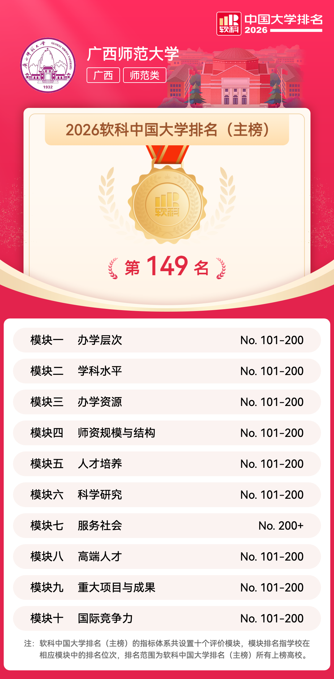 “软科中国大学排名”即“软科中国最好大学排名”,由上海软科教育信息咨询有限公司(简称软科)在2015年首次发布,2020年软科对中国大学排名进行了全面升级,倾力打造关于中国高校办学水平最为全面、最为系统、最为准确的排名评价,旨在向学生、家长和全社会提供更加及时、更加细致、更加有针对性的高校可比信息。