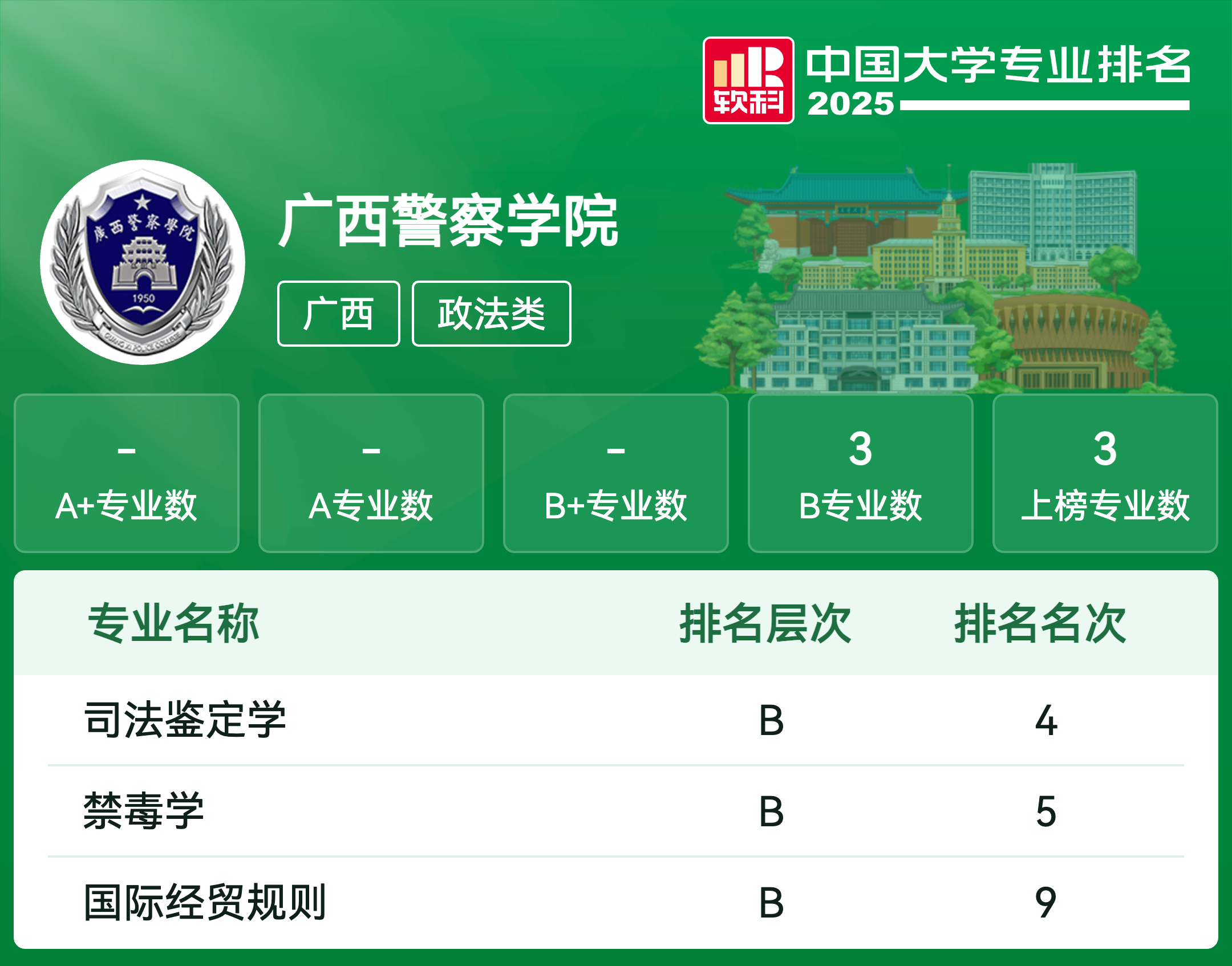| 专业代码 | 专业名称 | 评级 | 专业排名 |