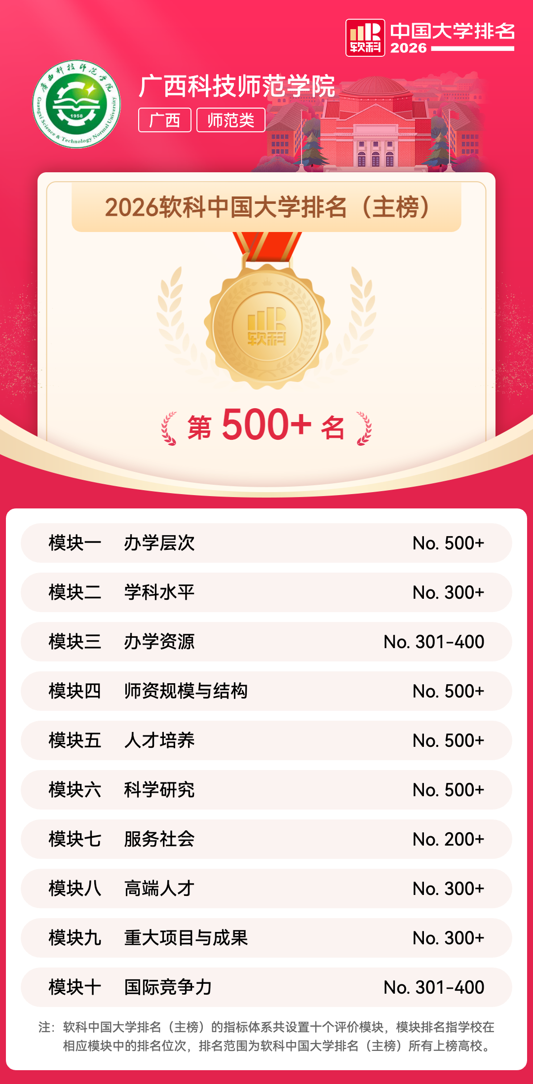 “软科中国大学排名”即“软科中国最好大学排名”,由上海软科教育信息咨询有限公司(简称软科)在2015年首次发布,2020年软科对中国大学排名进行了全面升级,倾力打造关于中国高校办学水平最为全面、最为系统、最为准确的排名评价,旨在向学生、家长和全社会提供更加及时、更加细致、更加有针对性的高校可比信息。