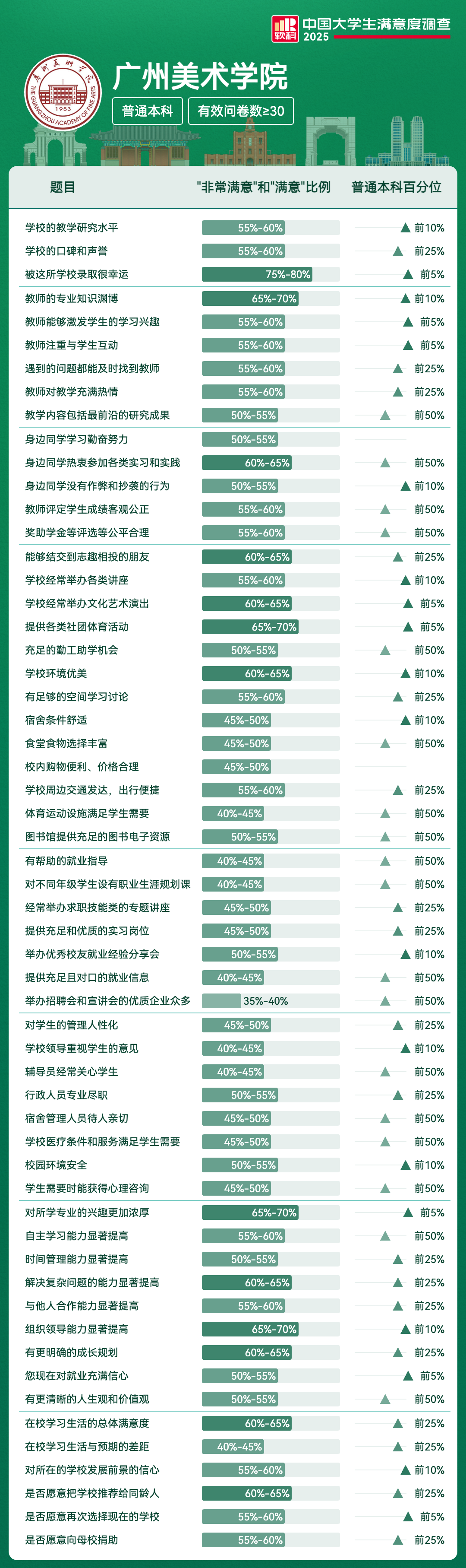 学校经常举办文化艺术演出 | 60%-65% | 前5% |