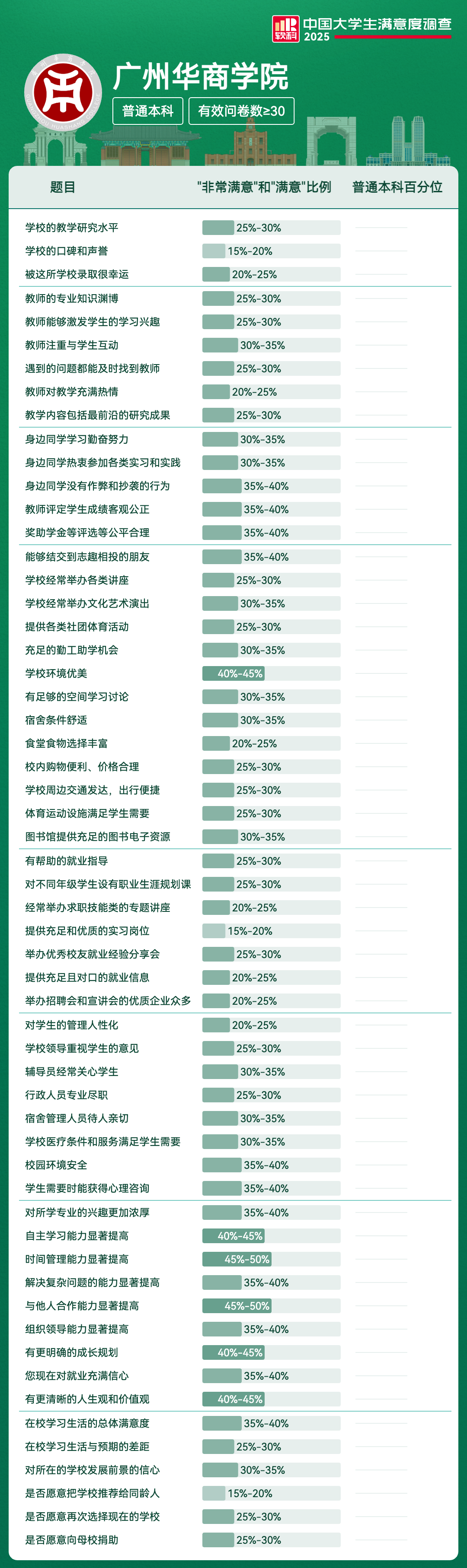 | 被这所学校录取很幸运 | 20%-25% | |