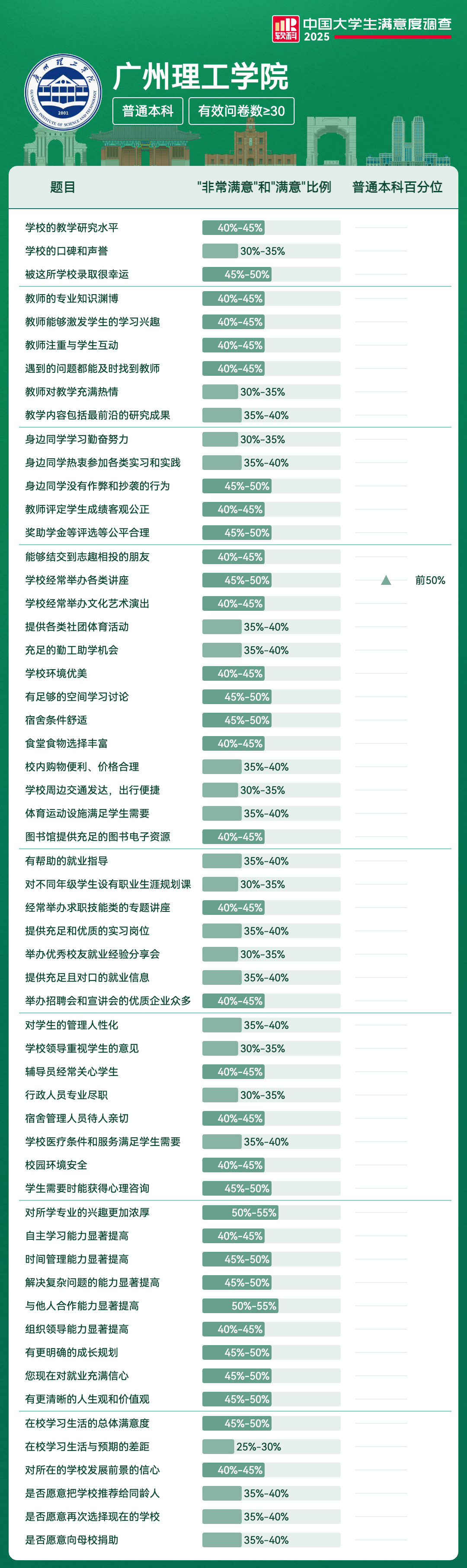 | 学校经常举办各类讲座 | 45%-50% | 前50% |