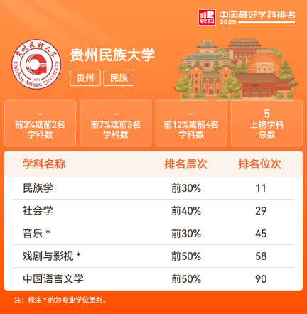 贵州民族大学创建于1951年5月17日,原名贵州民族学院;2012年经教育部和贵州省人民政府批准,更名为贵州民族大学。贵州民族大学隶属贵州省人民政府,是贵州省重点建设高校、贵州省人民政府和国家民委共建高校,由华东师范大学、华南理工大学对口支援建设。
