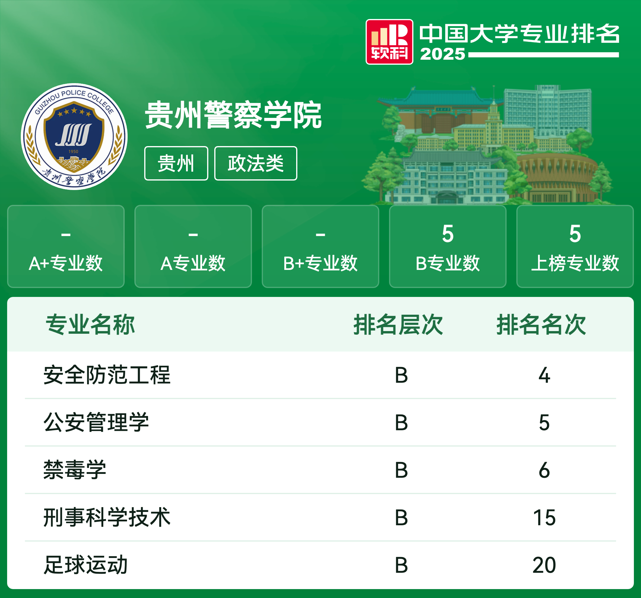 | 专业代码 | 专业名称 | 评级 | 专业排名 |