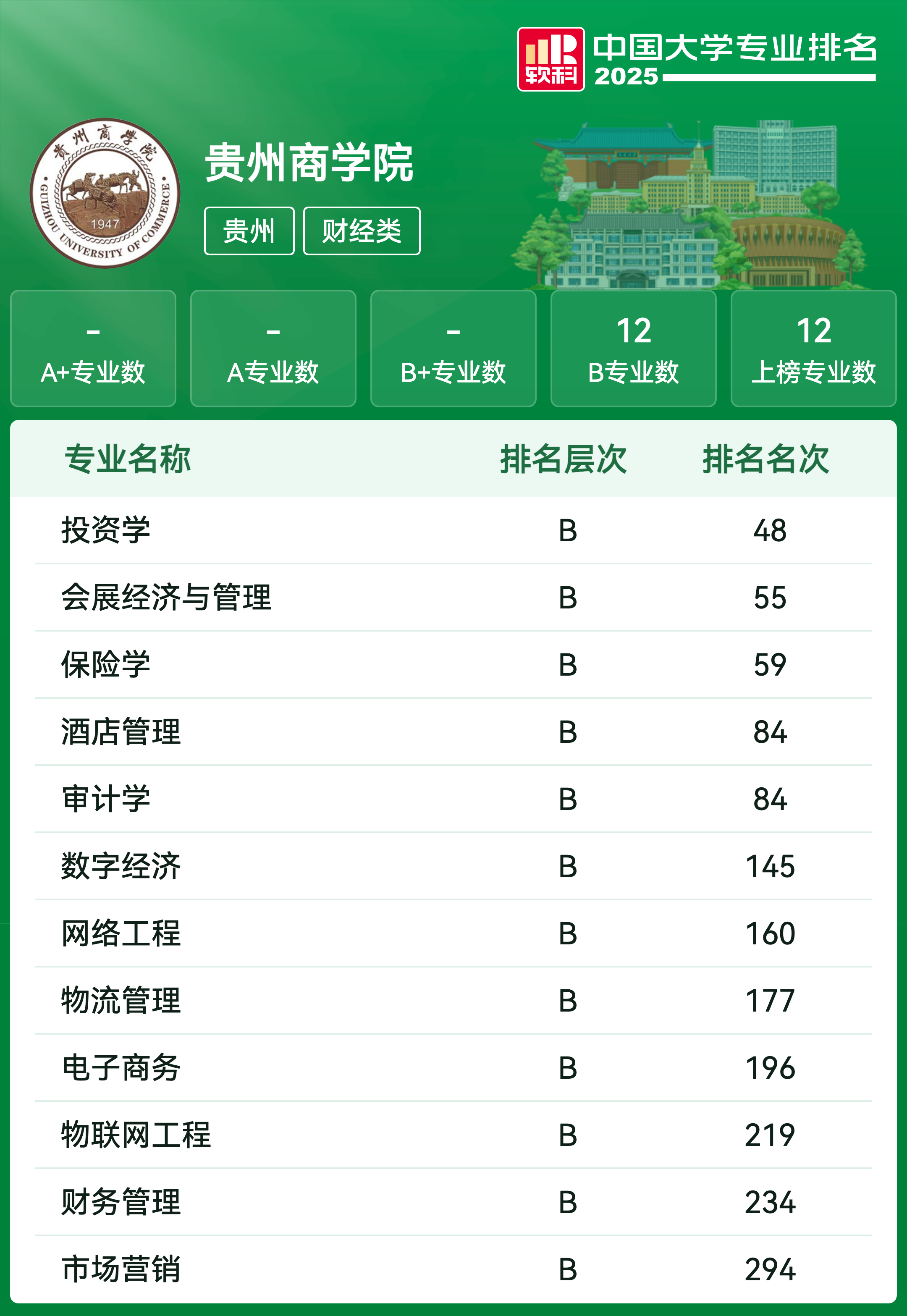 | 专业代码 | 专业名称 | 评级 | 专业排名 |