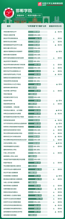 | 满意度前5项 | 满意及以上比例 | 全国高校排名区间 |