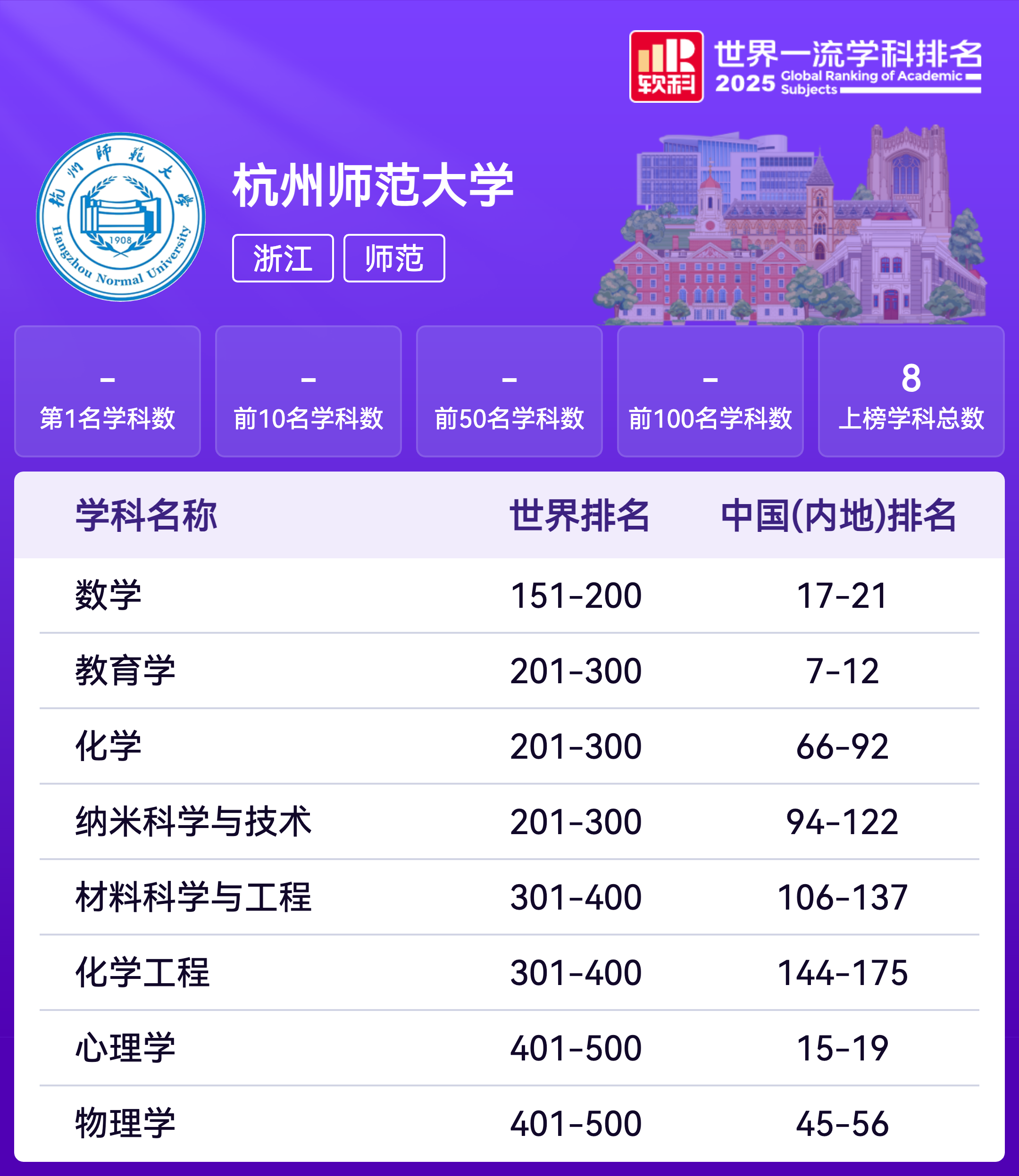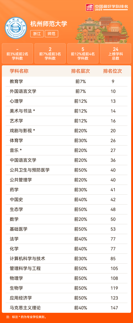 学科建设 成果显著 1个服务国家特殊需求博士学位人才培养项目;24个一级学科硕士点;17个专业硕士学位授予类别;10项国家、45项浙江省教学成果奖;省一流学科7个A类、6个B类;5个ESI排名前1%学科。