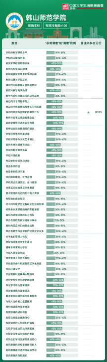 | 满意度前5项 | 满意及以上比例 | 全国高校排名区间 |