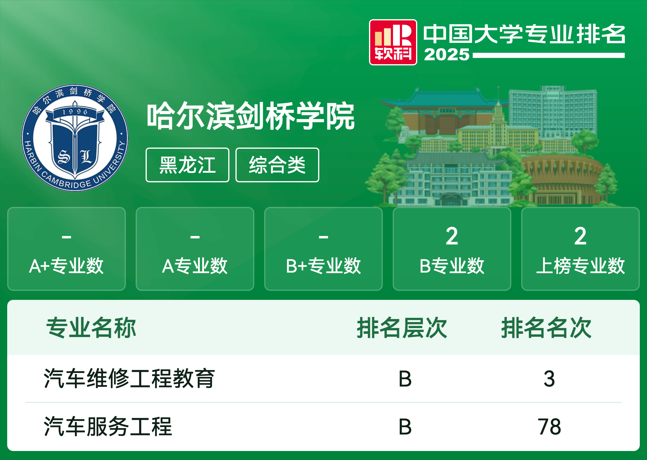 | 专业代码 | 专业名称 | 评级 | 专业排名 |