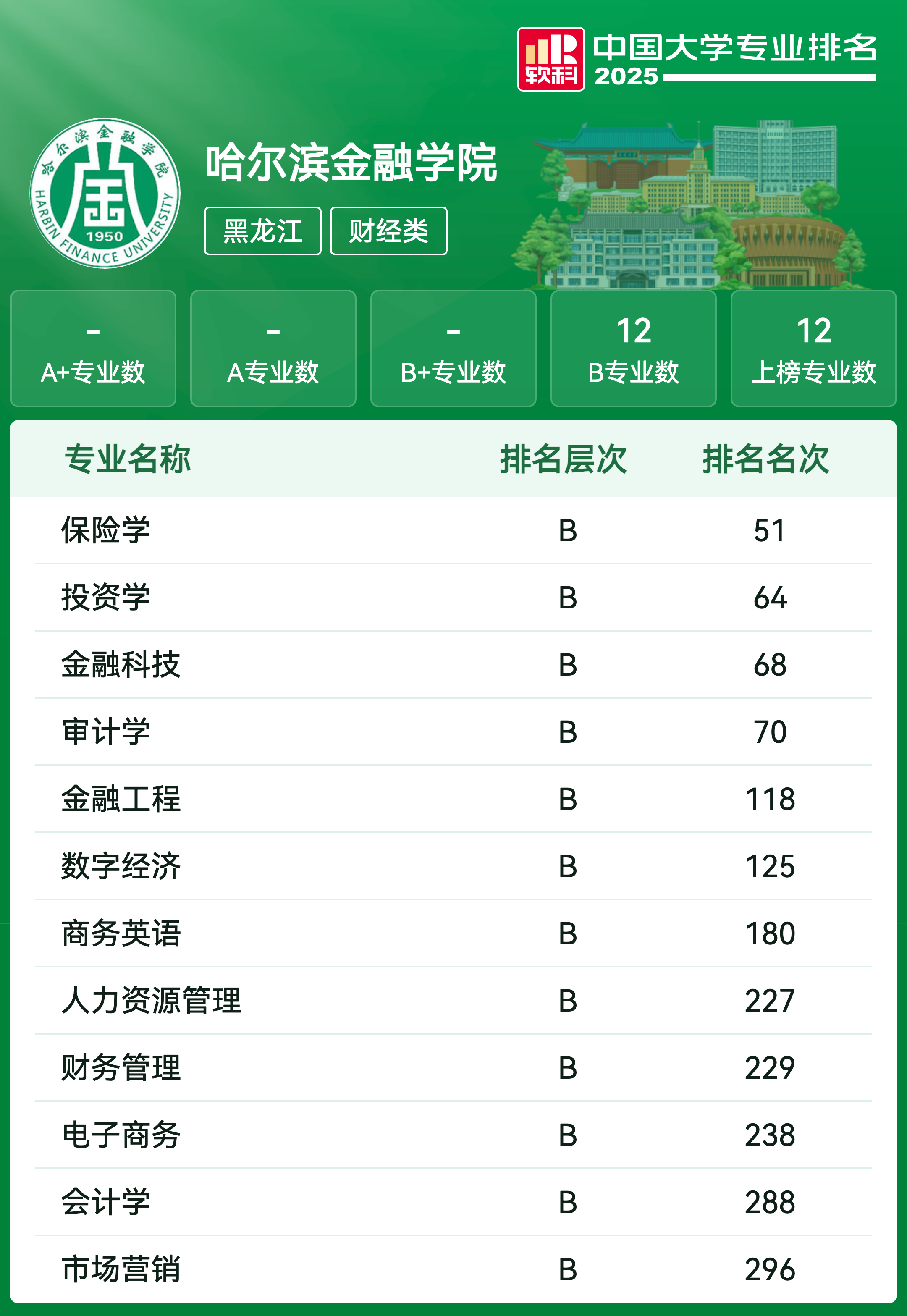 | 专业代码 | 专业名称 | 评级 | 专业排名 |