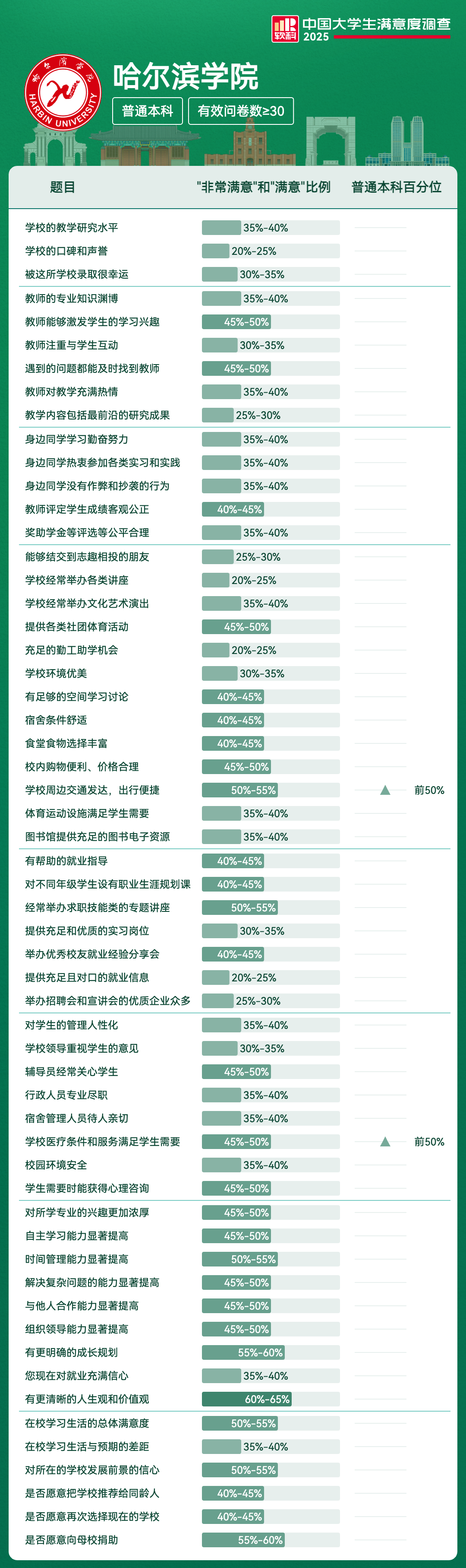 | 学校医疗条件和服务满足学生需要 | 45%-50% | 前50% |